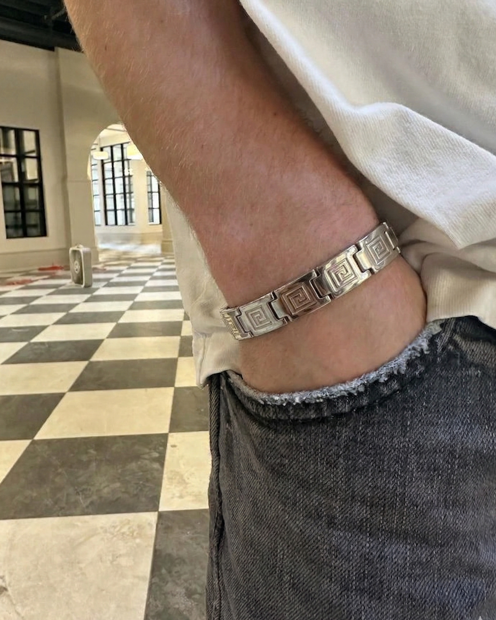 Made for real life. Anti-tarnish, waterproof, and effortlessly stylish — The Ironclad is the piece you reach for every morning without thinking twice. Choose the clean Linear or the textured Mosaic. Either way, it's yours for keeps.
